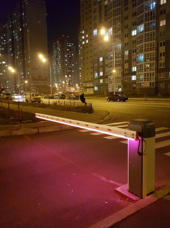 Автоматический электромеханический шлагбаум An-Motors ASB-6000 в базе поставляется без подсветки. Ее не сложно подключить самостоятельно в месте крепления противоударной накладки.